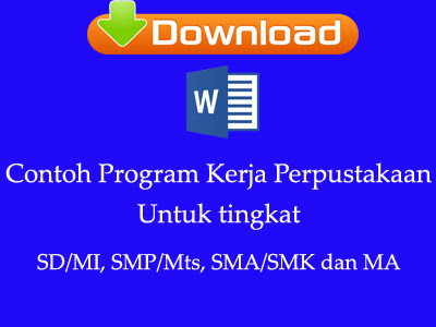 Contoh Program Kerja Perpustakaan SD, SMP, SMA ini merupakan perangkat terbaru untuk kepala perpustakaan sekolah dalam menunjag tugas dan kewajibannya sebagai pengelola perpustakaan. Sebuah Program Kerja dibutuhkan sebagai rencana kerja pada periode tertentu. Selain dengan Proker, tugas kepala perpustakaan harus pula didukung dengan perangkat lainnya seperti Buku induk perpustakaan, Buku kunjungan harian perpustakaan, Buku kunjungan kelas perpustakaan, Rekapitulasi peminjaman buku, Daftar buku teks, Berita acara pemilihan buku, Buku inventaris perpustakaan, Daftar rasio buku teks, Daftar penggunaan buku, Kartu buku, Pesanan buku.